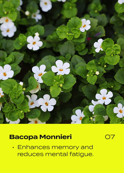 Traditional Ayurvedic herb proven to enhance memory, reduce anxiety, and support long-term cognition.